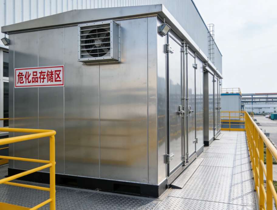 温度控制上,它不像普通冷库那样固定一个温度,而是能根据存储的危化品种类灵活调节,通常在-20℃~10℃之间。比如有些易挥发的易燃液体,需要较低温度抑制挥发,就可以调到0℃以下;而有些腐蚀性较弱、对温度要求不那么严格的危化品,调到5℃~10℃也能满足需求。不过要注意,不同危化品不能混存,哪怕温度适配,性质冲突的危化品放在一起,也可能引发化学反应,这点在使用时一定要注意。