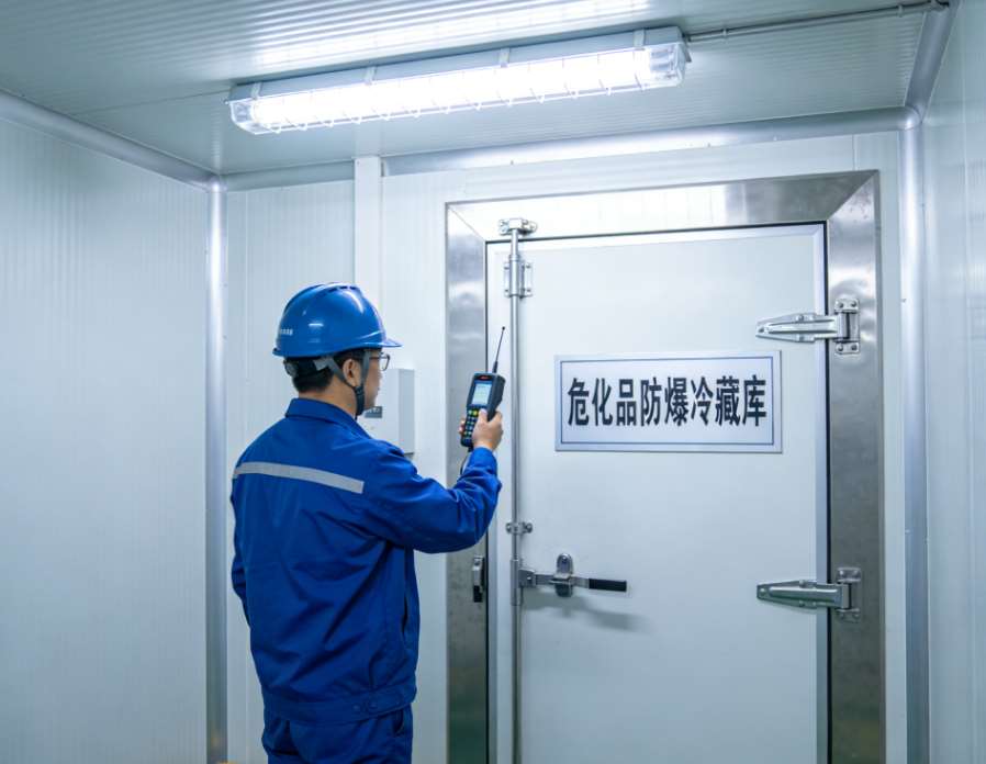 另外,库内还会配备防爆型的温度、湿度传感器,实时监测库内环境,一旦温度超出设定范围,会自动报警并调节制冷系统,避免温度波动影响危化品存储安全。还有通风系统,也是防爆设计,定期排出库内可能积聚的危化品挥发气体,减少安全隐患——毕竟有些危化品哪怕在低温下,也会少量挥发,积聚多了就容易出问题。