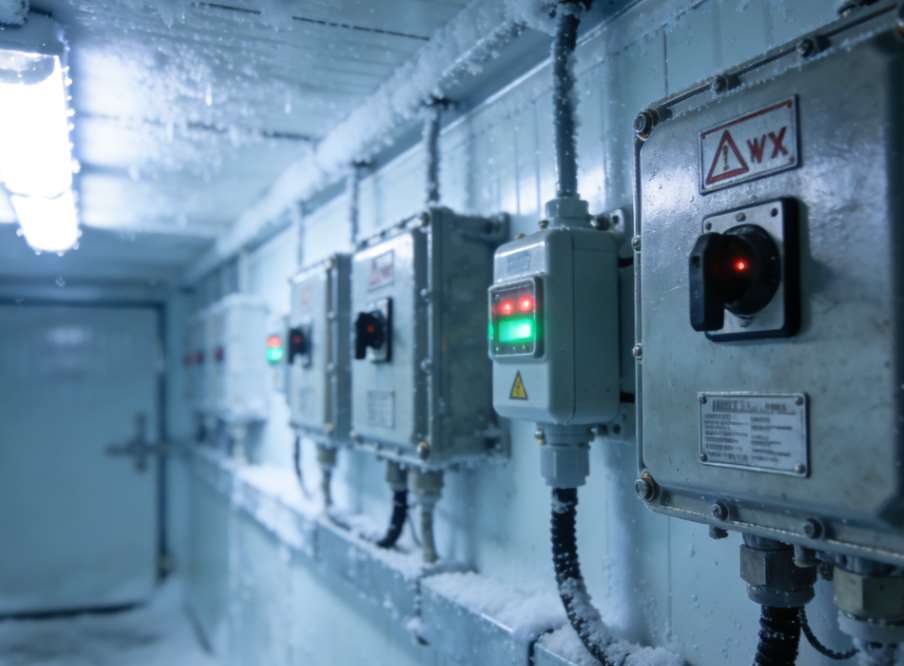 然后是最核心的防爆设计,这也是它和普通冷库的核心差异。制冷系统方面,所有部件都是防爆型的——压缩机、冷凝器、蒸发器,还有风机,都是经过防爆认证的,不会在运行时产生火花,而且制冷管路会做密封处理,避免制冷剂泄漏后与危化品发生反应。电气系统更是重点,库内的照明灯、开关、传感器,甚至线路铺设,都采用防爆结构,线路会穿防爆管保护,防止线路老化、短路产生电火花,毕竟危化品大多易燃易爆,哪怕一个小小的火花,都可能酿成大祸。