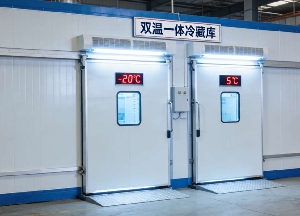 双温一体冷藏库,简单说就是把两个不同温度需求的冷库“整合”在一个库体里,不用单独建两个库房,节省空间不说,操作起来也更省心。它的核心设计就是分区隔离,两个温区(冷藏、冷冻)之间会做密封隔断,避免温度串流——毕竟冷藏要的是“保鲜不结冰”,冷冻要的是“深度锁鲜不化冻”,串温了可就麻烦了。
