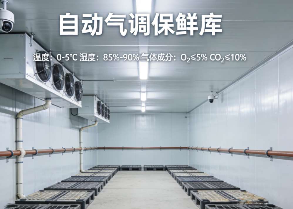全自动机械制冷(搭配智能控温系统,可联动气调系统实现温湿度、气体浓度协同调控)