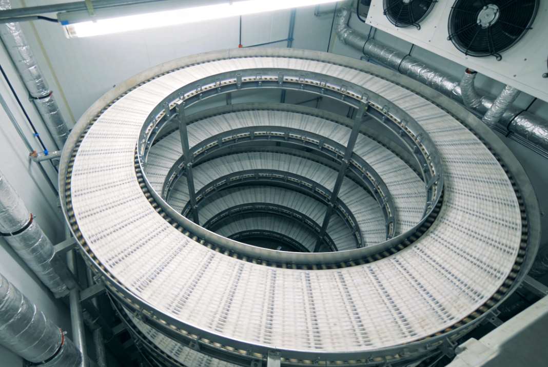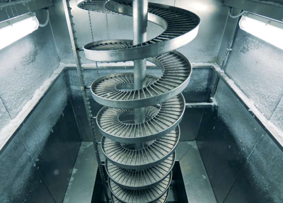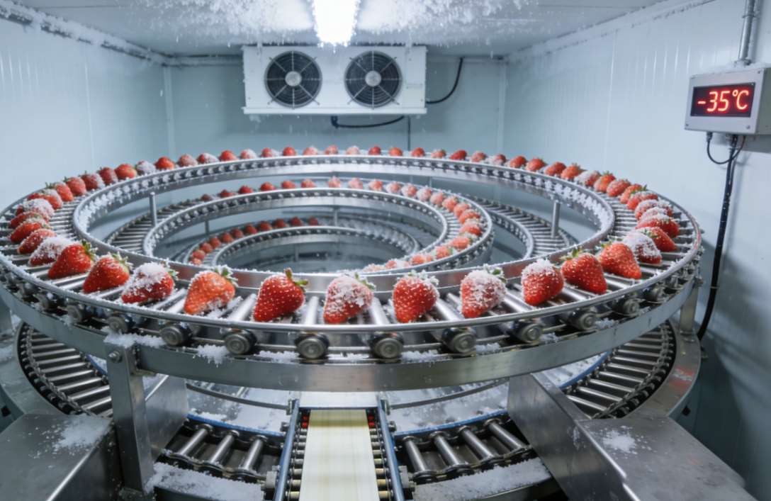 很多人好奇它怎么做到快速冻结的,其实原理不算复杂,但细节很关键。简单说,就是把需要冻结的食品(比如刚屠宰好的鲜肉、切好的蔬菜块)放在输送带上,传送带顺着螺旋轨道慢慢移动,同时制冷系统持续往库内吹超低温冷风。