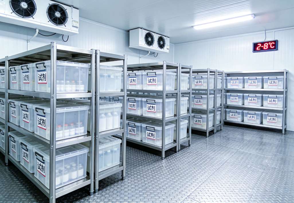 这个冷库主要就是用来存各类试剂的,比如医用诊断试剂、生物试剂、化学试剂等,只要是需要恒温储存、保障活性的试剂,基本都能放。不过不同试剂的储存要求还是有差异的,比如有些试剂需要避光,库内就会配遮光设施;有些试剂需要防潮,库内还会搭配除湿设备,控制相对湿度在40%-60%左右。