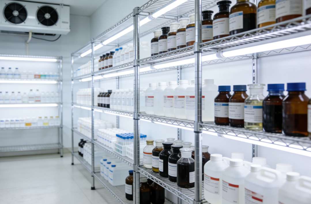 储存的时候,一般会用专用的试剂货架,货架大多是不锈钢材质,耐腐蚀、易清洁,而且不会产生异味,避免污染试剂。试剂摆放也有讲究,不能堆得太密,要留出走道和通风空间,不然库内温度会不均匀,可能有的地方达标,有的地方不达标。
