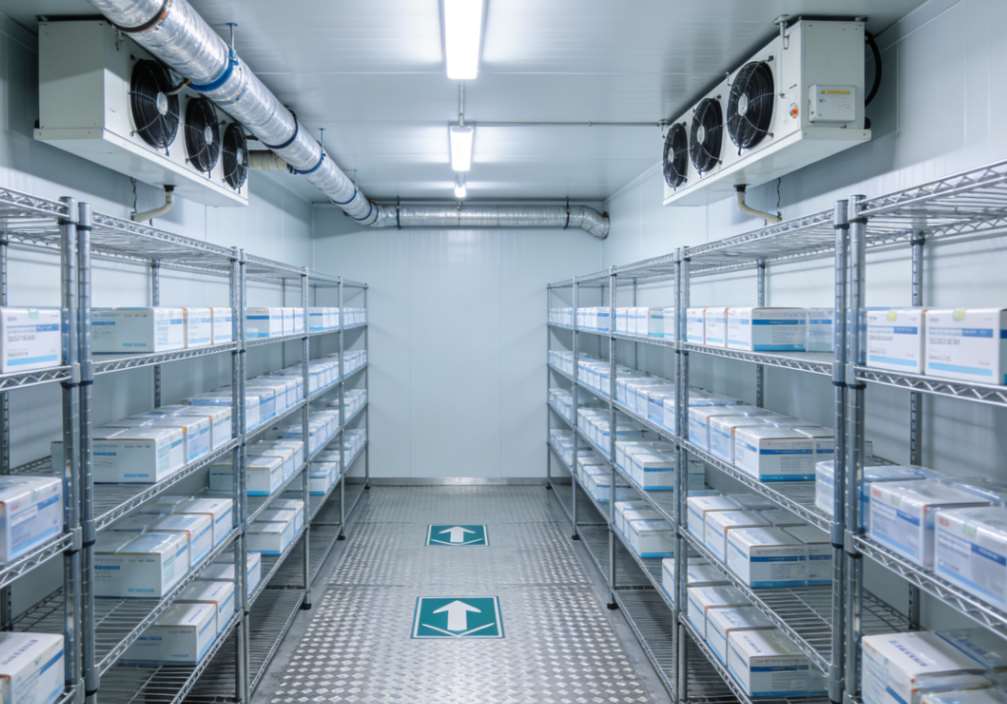 另外,库内会分不同区域,比如主储存区、缓冲过渡区,还有应急储存区——缓冲过渡区挺实用的,每次开门取放疫苗时,能减少库内低温流失,相当于一个“温度缓冲带”,不然频繁开门,温度忽高忽低,疫苗可经不起折腾。